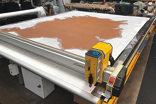 If you're working with small hides or irregular shaped fabric, even offcuts, Aeronaut's Tangent nesting software can autonest into the outlines in one operation, avoiding faults and tears.